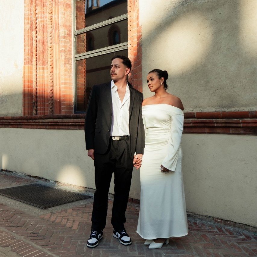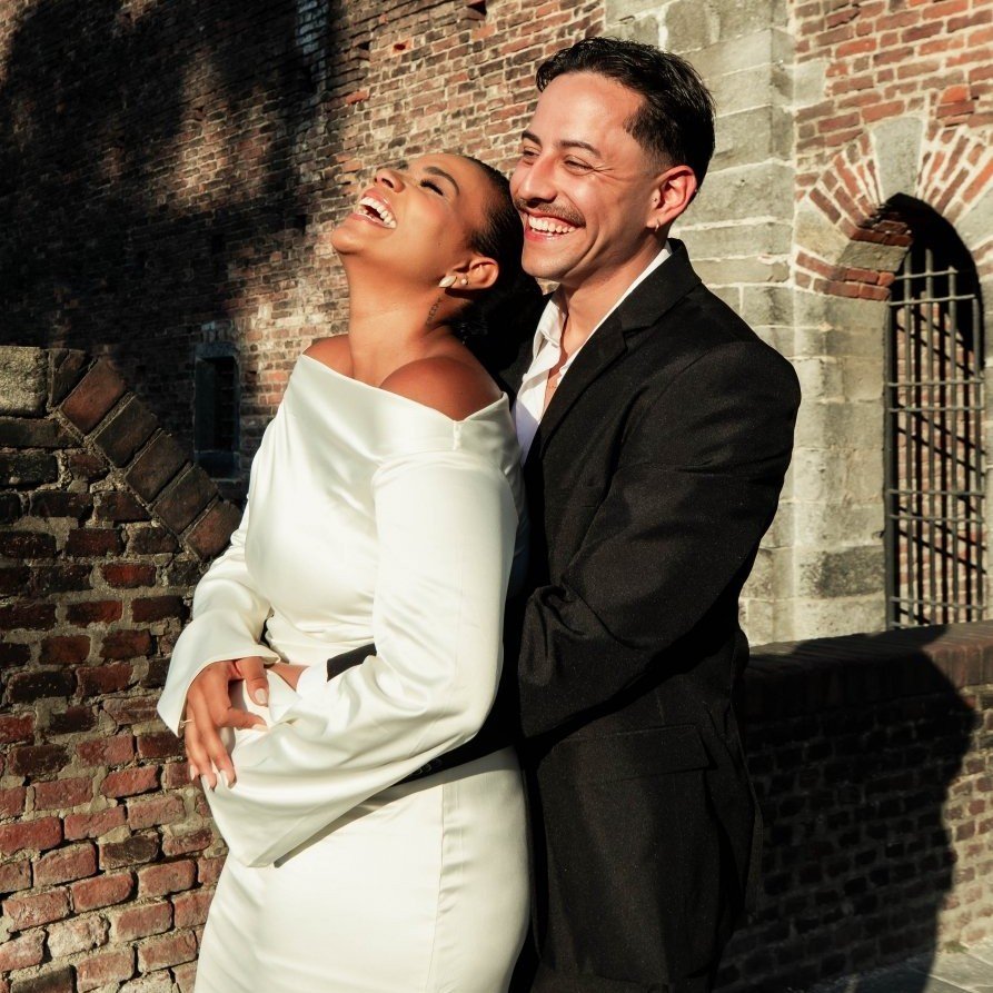O Gabriel é alegria em pessoa leve, divertido, mas também firme em seus valores. Um homem de fé, caráter e convicções. Eu sou movida pela garra e pela determinação, às vezes um pouco brava, mas sempre com o coração cheio de amor e verdade.